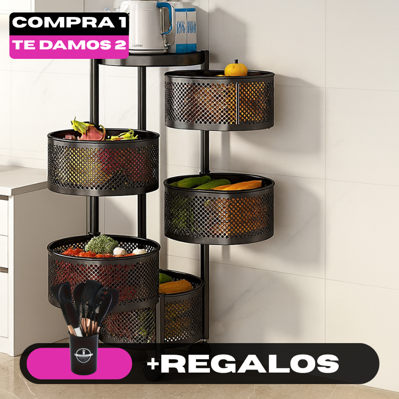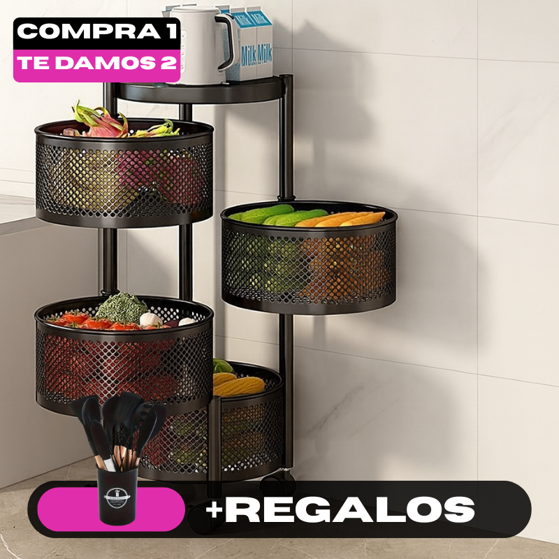 [Compra 1 y llévate 2] Frutera Articulada de Acero Inoxidable Giratoria de 3/4/5 Niveles + REGALO: Kit de Utensilios de Cocina